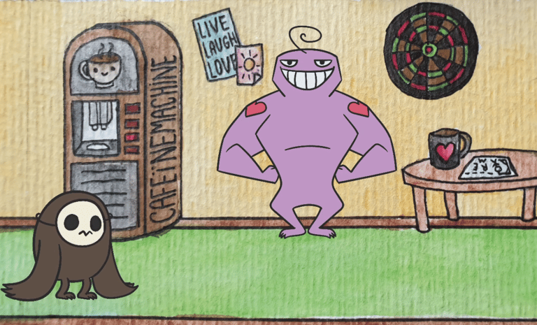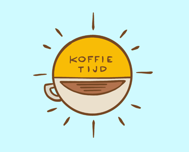 Het TV-programma 'Koffietijd' kwam langs op mijn activerende werkplek. Ik mocht hierbij vertellen hoe wij als ontwerpbureau logo's maken. Dit was mijn versie van hun logo: de zon die opkomt omdat het programma in de ochtend op TV is, een kopje koffie die het rondje afmaakt, en de streepjes eromheen die beide de stralen van de zon als de streepjes op een klok representeren.
